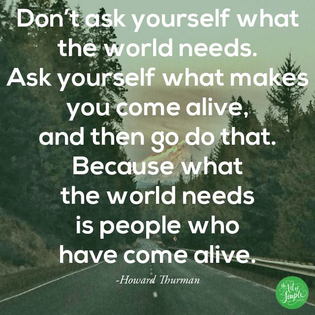 “Go to it… Ask not what the world needs, ask what makes you come alive and go to it, because the worlds needs more people who have come alive.”
