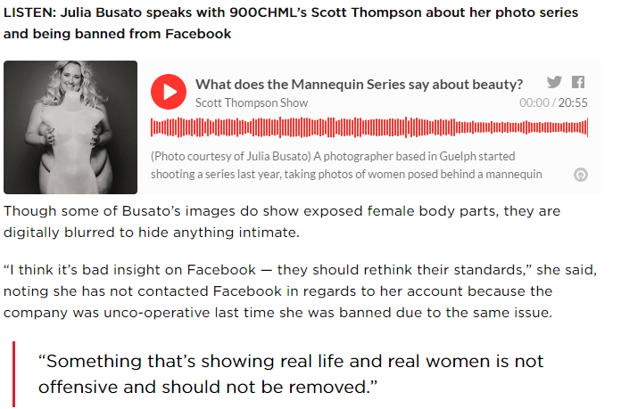As one of the many models in this #bodypositive series, I was featured in two of these online articles and thought I would pay a little homage to Julia’s amazing work and hat’s off to all the amazing women who were, are and will part of this project.